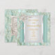 Invitation 25e Anniversaire Vert sarcelle Damassé Argent Blan