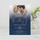 Imprimable ou imprimé 2 Photos Overlay Script QR Code Marine Bleu et Blanc Mariage Ajoutez votre code QR à votre site Web mariage au verso afin que vos invités puissent RSVP et voir tous les détails en ligne sans avoir besoin de pièces jointes séparées. Une typographie informelle en blanc pour l'en-tête principal du Mariage De compléter le reste du texte que vous pouvez facilement personnaliser. Remplacez les exemples de photos par vos propres favoris. Disponible sous forme numérique téléchargeable ou imprimée.