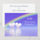 Invitation pour le 30ème anniversaire de mariage avec un arc-en-ciel et deux cœurs de perles brillants flottant sur l'eau bleue. Personnalisez le texte de l'exemple au dos avec vos propres informations pour votre événement.