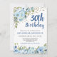 Invitation 30e anniversaire Blue Floral Aquarelle or Confetti