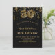 Une invitation moderne, élégante et glamour pour une fête de 30e anniversaire. Un arrière - plan noir, décoré de confettis. Le nom est écrit avec un script de style moderne écrit à la main. Personnalisez et ajoutez les détails de votre fête. Le numéro 30 est écrit avec une police de style montgolfière tendance, empreinte de léopard.