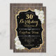 Rustic 30th Birthday Invitation. Design élégant avec motif en bois brun foncé, roses blanches et or parties scintillant faux. Comprend une police de script et des confettis. Parfait pour une fête d'anniversaire élégante. Customisez avec vos propres détails.