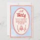 Si vous cherchez une invitation unique et élégante et facile à éditer pour 30ème anniversaire, celle-ci est parfaite pour vous. Comme vous le voyez, il présente un script écrit à la main rouge avec un baume de trente sur arrière - plan crème rétro. Avec un gâteau et des bougies rouges et colorés et un cadre dessiné à la main en rouge et bleu. Et RSVP sur le dos et photo personnalisable. Avec des informations complètes qui peuvent être customisées facilement en cliquant sur le bouton de personnalisation. Cette invitation d'anniversaire branchée et originale est aussi une invitation électronique numérique si vous voulez l'envoyer par courriel ou par texte. Alors attrapez-le et faites vraiment participer vos invitations.
