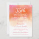 Élégante invitation pour une fête d'anniversaire de mariage de 35 ans avec un motif aquarelle corail rose estival, nom et date personnalisés ainsi que texte supplémentaire.