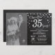 35e Anniversaire de Mariage avec photo personnalisée. Invitation Ardoise Noire et Argent. Trente-cinquième Anniversaire de Mariage. Fond Diamant Pailleté Ardoise Noir et Argent. Confettis Argentés. Anniversaire Adulte. Fête d'anniversaire pour homme ou femme. Pour une personnalisation plus poussée, veuillez cliquer sur le bouton "Personnaliser" et utiliser notre outil de conception pour modifier ce modèle.