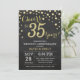 35e Anniversaire de Mariage Invitation Ardoise Noir et Or. Trente-cinq Anniversaire de Mariage. Fond de Diamant Pailleté Noir et Or. Confitte Dorée. Anniversaire Adulte. Fête d'Anniversaire pour Homme ou Femme. Pour une personnalisation supplémentaire, veuillez cliquer sur le bouton "Personnaliser" et utiliser notre outil de conception pour modifier ce modèle.