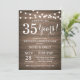 Invitation 35e anniversaire de mariage. Fond en bois rustique. Guirlande lumineuse. 1re, 2e, 3e, 4e, 5e, 10e, 15e, 20e, 25e, 30e, 35e, 40e, 45e, 50e, 55e, 60e, 65e, 70e, 75e, 80e, Toutes années. Anniversaire adulte. Fête d'anniversaire pour homme ou femme. Pour une personnalisation supplémentaire, veuillez cliquer sur le bouton "Personnaliser" et utiliser notre outil de conception pour modifier ce modèle.