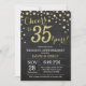 35e anniversaire de mariage Invitation tableau noir et or. Trente-cinquième anniversaire de mariage. Fond de diamant de paillettes noir et or. Confettis dorés. Anniversaire adulte. Fête d'anniversaire pour homme ou femme. Pour une personnalisation supplémentaire, veuillez cliquer sur le bouton "Personnaliser" et utiliser notre outil de conception pour modifier ce modèle.