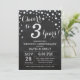 3e anniversaire de mariage Invitation tableau noir et argent. Troisième anniversaire de mariage. Fond diamant paillettes noir et argent. Confettis argentés. Anniversaire adulte. Fête d'anniversaire homme ou femme. Pour une personnalisation supplémentaire, veuillez cliquer sur le bouton "Personnaliser" et utiliser notre outil de conception pour modifier ce modèle.