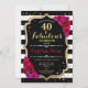 Invitation 40 Fabuleux anniversaire - Black White Stripes Ros