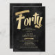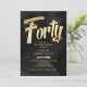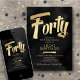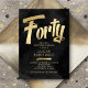 Commencez la fête sur le papier avec ce dessin audacieux et drôle d'invitation pour 40e anniversaire adulte. La typographie audacieuse et humoristique en or sur noir donne à cette invitation une ambiance classe mais humoristique. Parfait pour l'homme ou la femme qui aime être le centre de la fête. Commandez vos invitations imprimées ou téléchargez vos invitations numériques dès maintenant pour une journée qu'ils n'oublieront jamais !