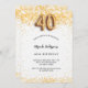 Pour une soirée élégante de 40ème anniversaire. Un arrière - plan blanc chic. Décoré de confettis dorés. Personnalisez et ajoutez un nom et des détails du parti. Le nom est écrit avec un script de style écrit à la main. Numéro 40 avec police de style ballon.