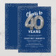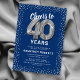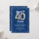 Élevez votre célébration de milestone avec nos élégantes invitations pour un 40e anniversaire ! Avec un fond bleu polyvalent, une brillance argentée scintillante, quarante charmants ballons à hélium argentés et un texte de 40e anniversaire tendance facile à personnaliser ! Ajoutez votre touche unique à cette journée spéciale et faites en sorte que vos invités anticipent un événement inoubliable.