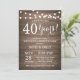 Invitation 40e anniversaire de mariage. Fond en bois rustique. Guirlande lumineuse. 1re, 2e, 3e, 4e, 5e, 10e, 15e, 20e, 25e, 30e, 35e, 40e, 45e, 50e, 55e, 60e, 65e, 70e, 75e, 80e, Toutes années. Anniversaire adulte. Fête d'anniversaire pour homme ou femme. Pour une personnalisation supplémentaire, veuillez cliquer sur le bouton "Personnaliser" et utiliser notre outil de conception pour modifier ce modèle.