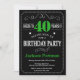 Invitation 40e anniversaire Noir et Vert Chalkboard