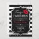 Invitation du 40e anniversaire. Design élégant noir blanc avec fausse parties scintillant argent. Comprend baiser des lèvres rouges, bandes blanches noires, confettis et police de script. Parfait pour une soirée d'anniversaire élégante. Trente Fabuleux ! Message-moi si vous avez besoin d'une personnalisation plus poussée.