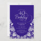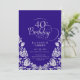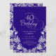 Elégante invitation à la fête du 40e anniversaire violet argent. Design classique avec rose, faux feuille argent et police de script de typographie. Carte invitation tendance parfaite pour une célébration anniversaire élégante. Personnalisez avec vos propres détails. Peut être customisé à n'importe quel âge. Invitations Zazzle imprimées ou téléchargement instantané modèle imprimable numérique.
