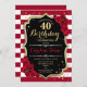 Invitation 40e anniversaire - Rouge or noir blanc rayures Ros