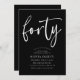 Invitation 40e Blanc sur Noir fête d'anniversaire Script mode