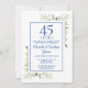 Avec un délicat feuillage de jardin campagnard à l'aquarelle, cette chic invitation d'anniversaire peut être personnalisée avec vos informations de célébration spéciales de 45e ou 65e anniversaire de mariage, avec un fond bleu saphir au verso. Conçue par Thisisnotme©