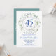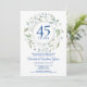 Un décoratif feuillage de laurier en forme de guirlande entoure une bordure circulaire contenant 45 ou 65 ans de typographie bleu saphir d'anniversaire. En dessous, les détails de votre événement d'anniversaire sont présentés dans un texte élégant classique. Le verso présente les noms du couple marié inscrits dans une guirlande florale assortie. Conçu par Thisisnotme©