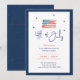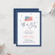 Fêtez l'anniversaire de l'Amérique avec une touche sophistiquée en invitant vos amis et votre famille à votre dîner 4 juillet en utilisant cette invitation élégante et personnalisable. Le design est agrémenté d'un magnifique drapeau américain aquarelle peint à la main, ajoutant une touche artistique au thème classique. Entouré d'étoiles délicates, le script "4 juillet" crée un point focal charmant. La frontière bleu marine encadre l'invitation à merveille, lui donnant un aspect raffiné. Ce qui rend cette invitation vraiment spéciale est sa polyvalence et ses options de personnalisation. Vous pouvez customiser tous les détails de l'événement, y compris la date, l'heure, l'emplacement et les informations RSVP pour vous assurer que vos invités ont tout ce dont ils ont besoin pour participer à la célébration. Cette invitation est parfaite pour un rassemblement patriotique, alliant élégance et esprit festif, faisant de votre dîner 4 juillet un événement inoubliable.