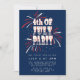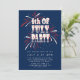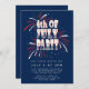 Invitation 4 juillet Feu d'artifice rouge, blanc et bleu