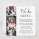 Famille d'Invitations et amis pour vous voir dire "I do" encore avec un élégant carré 4 photo collage de la suite faire-part de mariage. Tout libellé est simple à personnaliser, y compris une citation qui dit "nous faisons partie II." Customisez-le pour toute célébration du mariage, comme une cérémonie de renouvellement du voeu, une réception du 1er anniversaire, une soirée post-elopement, un cocktail ou un dîner. Personnalisez avec les détails de votre choix, y compris la date du mariage, rsvp, le code vestimentaire, le site Web, etc. (IMAGE PLACEMENT CONSEIL : Un moyen facile de centrer une photo exactement comment vous voulez est de la rogner avant de télécharger sur le site Zazzle.) Le design moderne minimaliste noir et blanc présente quatre images du couple marié, une calligraphie manuscrite branchée et une typographie chic de style machine à écrire. Que vous ayez fui ou non à cause de la pandémie ou que vous ayez été réduit à un minimonisme plus petit, plus intime ou micro-mariage, le bonheur jamais après la fête peut encore commencer. Félicitations à la mariée et au marié !