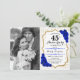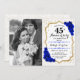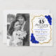 Invitation pour le 40e anniversaire de mariage avec photo. Design élégant en saphir et blanc avec faux or brillant. Caractéristiques : police de caractères script, roses bleues royales et confettis. Peut être personnalisé pour n'importe quelle année ! Envoyez-moi un message si vous avez besoin d'une personnalisation supplémentaire.