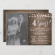 Invitation pour le 4e anniversaire de mariage avec photo personnalisée. Fond en bois rustique. Guirlande lumineuse. Noir et blanc. 1er, 2e, 3e, 4e, 5e, 10e, 15e, 20e, 25e, 30e, 35e, 40e, 45e, 50e, 55e, 60e, 65e, 70e, 75e, 80e, Toutes années. Anniversaire adulte. Anniversaire pour femme ou homme. Pour une personnalisation supplémentaire, veuillez cliquer sur le bouton "Personnaliser" et utiliser notre outil de conception pour modifier ce modèle.