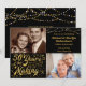 Invitez vos invités avec cette invitation d'anniversaire de mariage de 50 ans en noir et or avec une typographie moderne indiquant "50 ans de fabrication" et vous permet d'inclure leur année de mariage dans le cadre du design et en ajoutant leurs photos THEN et NOW.