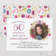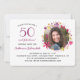 50 et Fabulous joli moderne botanique floral aquarelle couronne autour de la photo de la fille d'anniversaire. L'arrière présente un motif floral sur toute la longueur. Changez la photo, les détails et même l'âge pour customiser. Crédit photo : Photographie © Storytree Studios, Stanford, CA