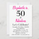 Des amis Invitations pour célébrer le Fabuleux cinquantième anniversaire de votre être aimé avec ce design audacieux et élégant de 50ème anniversaire qui est facile à personnaliser juste pour cette fille d'anniversaire spécial. 50 et Fabuleux en gras texte rose et noir avec un amusant, pois noirs sur un arrière - plan rose.