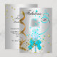 Invitation 50 Turquoise Soie Gold Anniversaire