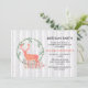 Une invitation à une fête d'anniversaire de style boho. Conçue avec un design à l'aquarelle numérique. Une silhouette de renne orange pastel à l'intérieur d'une couronne de feuilles d'herbes. Des champignons et des fougères de forêt à ses pieds. Un motif d'arbre à bouleau gris et blanc en arrière-plan.