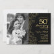 Invitation 50e anniversaire avec photo - Floral or noir