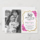 Invitation 50e anniversaire avec photo - Rose or blanc