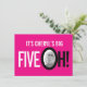 Carton d'invitation d'anniversaire 50 ans recto-verso rose et noir. Invitation graphique lumineuse personnalisable avec vos propres détails et une photo sur le devant dans le o de oh et trois photos de votre fille d'anniversaire au verso. D'autres articles assortis et années d'anniversaire sont disponibles. Création unique par www.mylittleeden.com