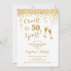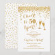 Invitation d'anniversaire de mariage de 50 ans. À 50 ans ! Design élégant en blanc et or. Comprend des verres à champagne, une police script et des confettis. Parfait pour une célébration élégante de 50 ans de mariage. Cartes d'invitation Zazzle imprimées ou modèle numérique à télécharger instantanément. Peut être personnalisé pour afficher n'importe quelle année ! Personnalisez avec vos propres détails.