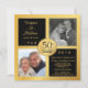 Créez vos propres invitations de fête d'anniversaire de mariage de 50 ans personnalisées et fabuleuses -- deux (2) modèles de photo encadrés "hier et aujourd'hui" -- avec un magnifique emblème métallisé de couleur or brillant. Personnalisez le nom, la date et les détails pour votre célébration spéciale d'anniversaire de mariage de diamant. **REMARQUE : Format adapté pour les cartes d'invitation CARRÉES. D'autres tailles et styles sont disponibles pour les 50 ans d'anniversaire, les anniversaires et autres célébrations de jalons heureux.