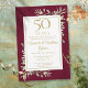 Avec des feuilles de verdure aquarellées botaniques sur fond bordeaux. Cette élégante invitation d'anniversaire peut être personnalisée avec vos informations de célébration d'anniversaire de 50 ans dans une typographie dorée élégante. Conçue par Thisisnotme©