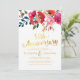 Invitation 50e Anniversaire de Mariage Élégant Fleurs Dorées