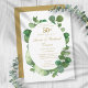 Avec de délicates feuilles d'eucalyptus aquarellées, cette invitation chic et botanique pour le 50e anniversaire de mariage peut être personnalisée avec vos informations d'événement spéciales, avec un fond doré au verso. Conçu par Thisisnotme©