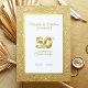 Élégantes cartes d'invitation d'anniversaire de mariage de 50 ans, à la fois modernes et élégantes. Dorure et paillettes avec un grand 50 et un cœur en diamant au milieu. Personnalisez ces cartes d'anniversaire de mariage avec vos informations. Parfait pour un renouvellement de vœux. Facile à éditer. Voir la collection assortie ; autocollants, serviettes, étiquettes, etc.
