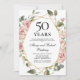 Élégant modèle d'invitation pour le 50e anniversaire de mariage avec un cadre floral moderne de roses roses poussiéreuses et de feuillage vert doux. Tout le texte est modifiable.