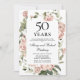 Un élégant modèle d'invitation pour le 50e anniversaire de mariage comporte un cadre floral moderne de roses roses poussiéreuses et de feuillage vert doux. Tout le texte est modifiable.