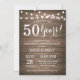 Invitation 50e anniversaire de mariage. Fond en bois rustique. Guirlande lumineuse. 1re, 2e, 3e, 4e, 5e, 10e, 15e, 20e, 25e, 30e, 35e, 40e, 45e, 50e, 55e, 60e, 65e, 70e, 75e, 80e, Toutes années. Anniversaire adulte. Fête d'anniversaire pour homme ou femme. Pour une personnalisation supplémentaire, veuillez cliquer sur le bouton "Personnaliser" et utiliser notre outil de conception pour modifier ce modèle.