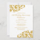 Cartes d'invitation formelles pour un anniversaire. Une invitation à célébrer les 50 ans de mariage avec un élégant motif de tourbillon doré. Personnalisez avec les détails de votre fête.