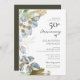 Cartes d'invitation pour le 50e anniversaire de mariage aquarelle végétation eucalyptus sauge. La police de caractères script met en valeur avec une police de caractères sérif facile à lire pour les noms. Facile à ajuster pour vos propres besoins de mariage.