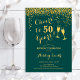 Invitation du 50e anniversaire. Salue À 50 Ans ! Design élégant en vert émeraude et or. Il comprend des verres à champagne, des caractères de script et des confettis. Idéal pour une soirée de cinquantième. Personnalisez avec vos propres détails. Peut être customisé pour montrer n'importe quel âge.